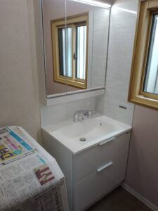 洗面台入替えでスッキリ 2025.11.01 伊勢谷 有紀 水廻り 毎日家族が使う洗面台。いつの間にか小物が増え、雑多になりがちですよね。 今回はそんなお悩みを解消するために、三面鏡タイプの洗面化粧台へリフォームしました。 施工前 施工後 鏡の裏に収納スペースがあるので、見た目もすっきり。 使い勝手が良くなり、朝の身支度もスムーズに。暮らしが少し整うだけで、気分も明るくなります。 洗面台の横には、水はね防止のパネルを。 水が飛んでも染み込まないので毎日の掃除がぐっとラクになりますね。 クロスの張替えも行い洗面室が一新されました。 PROFILE この記事を書いたスタッフ 伊勢谷 有紀 担当ブログ プロフィール 前の記事 次の記事 一覧へ戻る