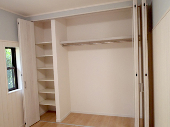 子供部屋へのリフォームなので、将来のことも考え広く収納スペースもたっぷりあり、せっかくの日当たりの良さを活かせる明るい内装をご提案させていただきました。 |