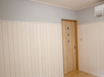 | 白を基調にした木材を張ることによって、広く明るい部屋になりました。 | 今まで使わなかった応接間が暖かく明るい子供部屋へと変わりました。 |