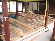 | 施工中の様子です。柱を残して解体しました。 | 床をつくっていきます。 | 和室は洋室につくり変わります。 |