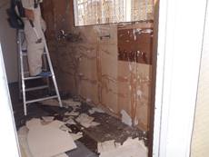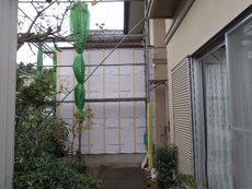| 増築を行うため、基礎を設置します。 | 外から見た壁の様子です。 | 壁紙を新しいクロスに張替えていきます。 |