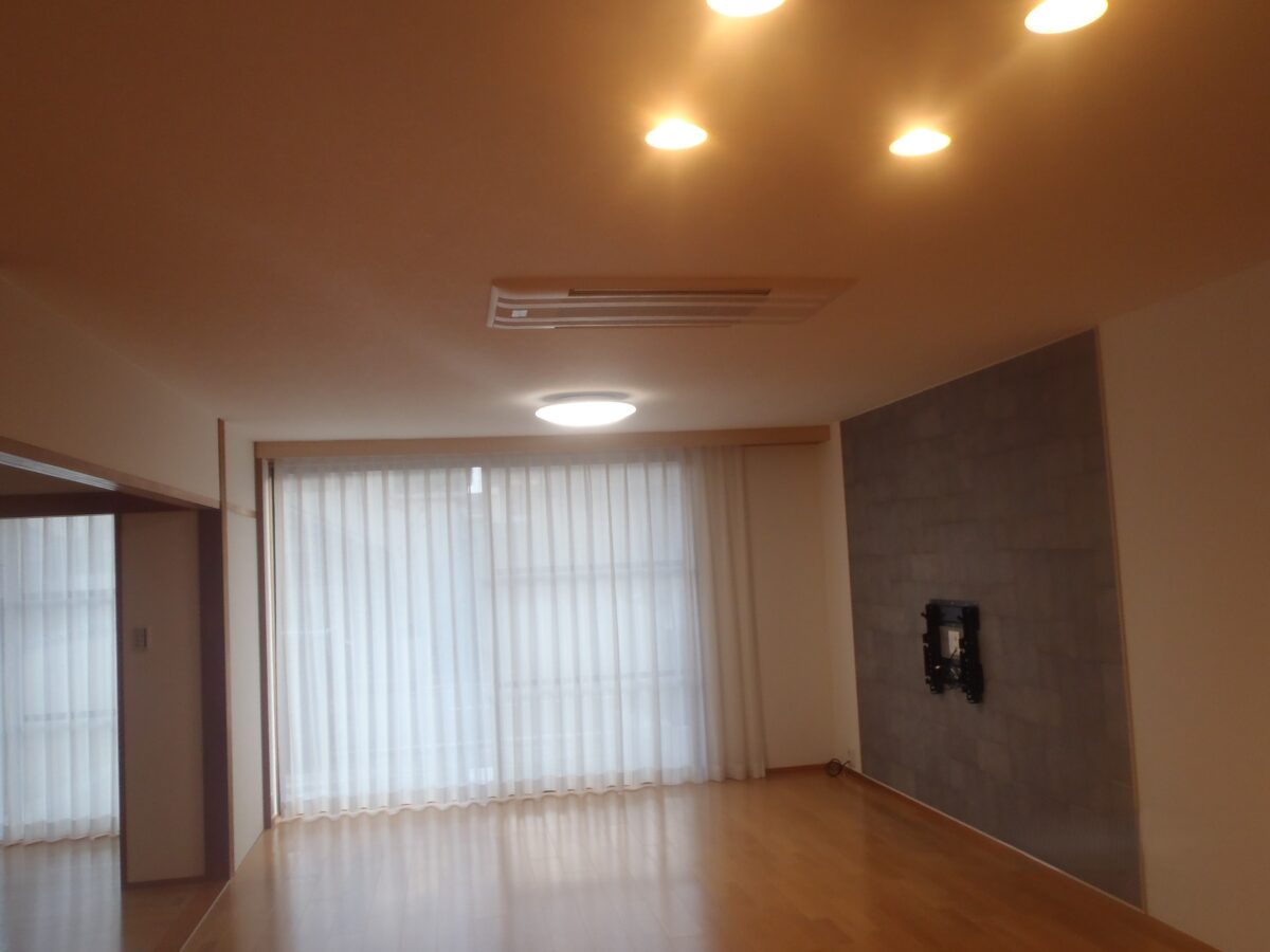 | 施工内容 | 床張替/断熱材充填/タイル張り浴室からユニットバスへ/洗面台入替/トイレ入替/階段踏板張替/エコカラット張り/オール電化工事/給排水工事/クロス工事/電気工事 |
