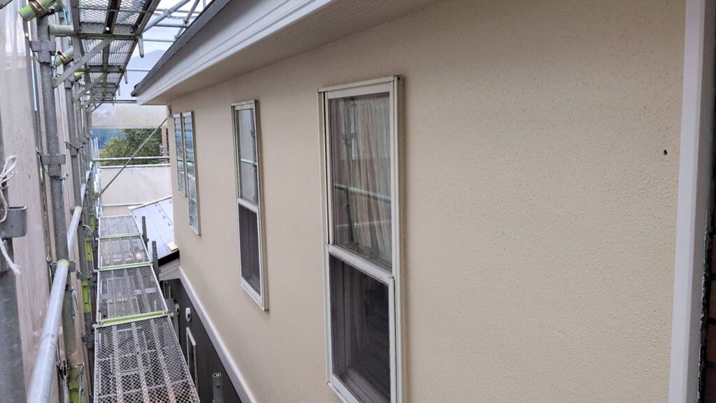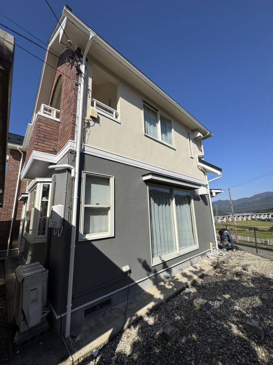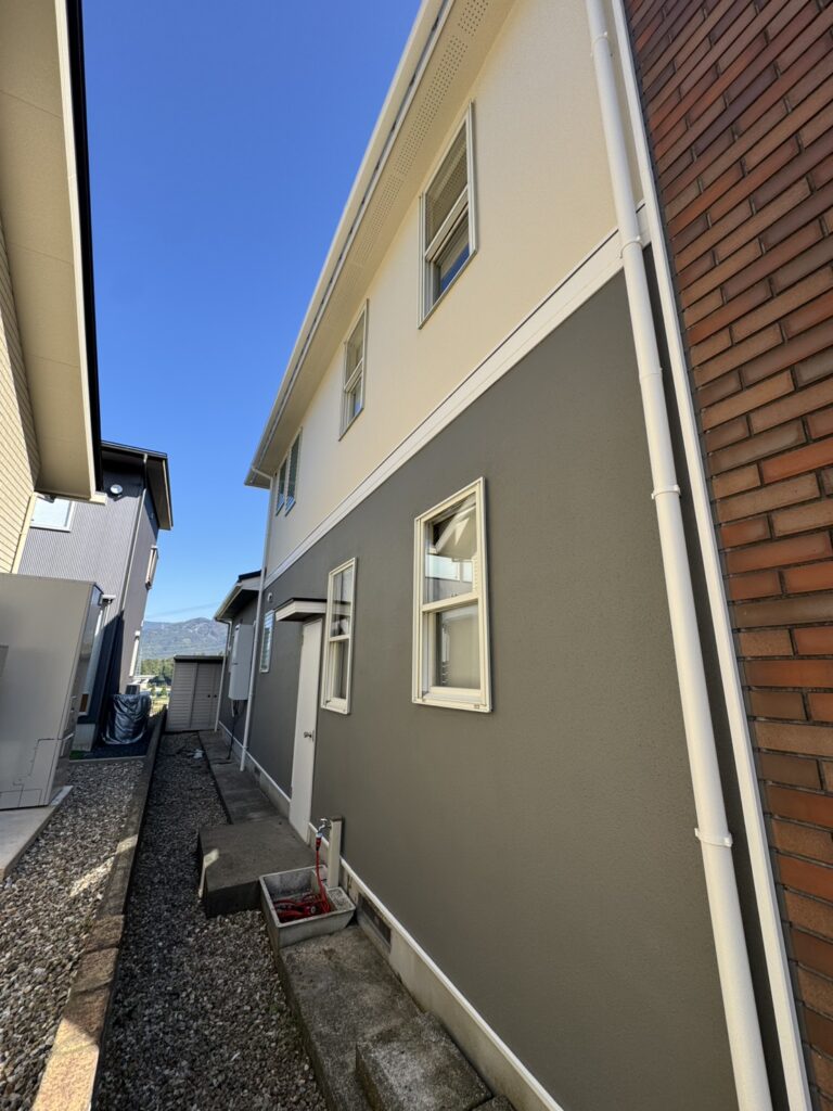 外壁は落ち着いた色合いで塗り替えます。耐候性の高い塗料を採用し、見た目の美しさだけでなく、これからの暮らしを守る安心の性能も備えていきます。