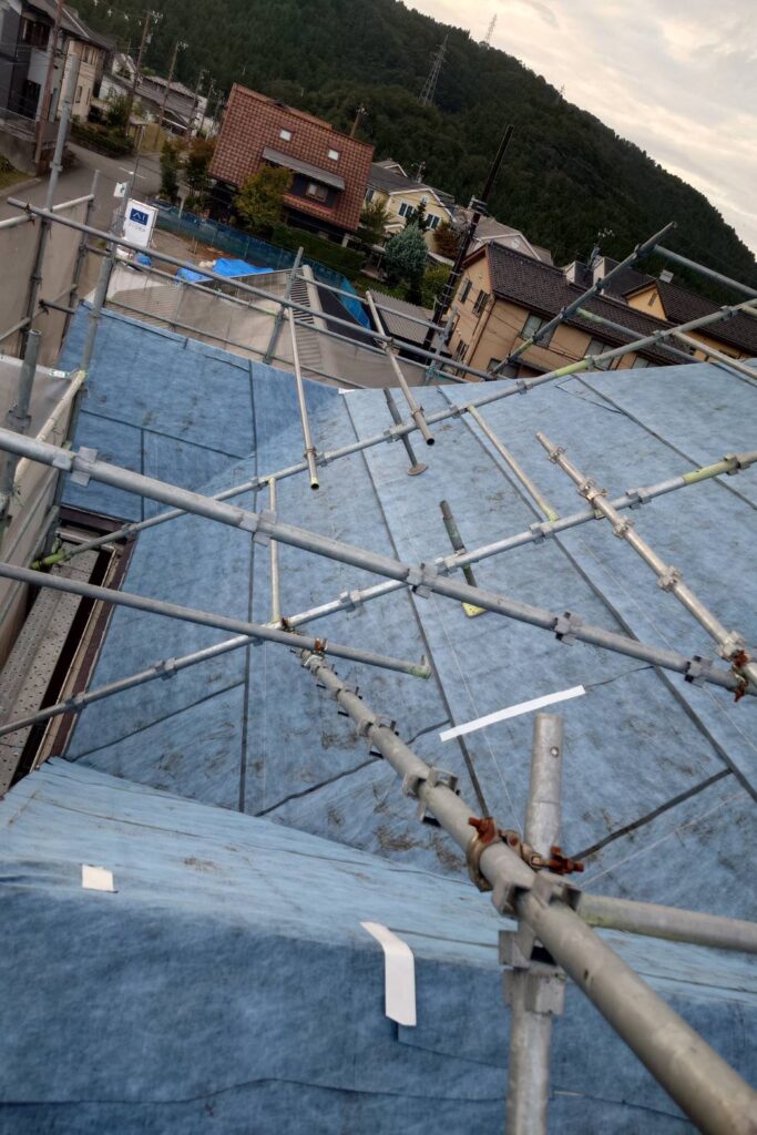年月を重ね、外観の経年劣化が目立つ状態でした。現地調査の結果、屋根は劣化が進行しており、塗装では十分な耐久性を確保できないと判断。既存屋根の上から新しい屋根材を重ねる上張り工法をご提案しました。